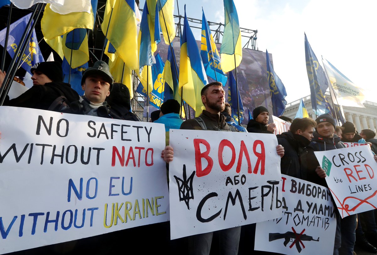 Today's rally on the Independence Square in Kyiv is dubbed "The red lines for Zelenskyy", the protesters intend to warn the president against committing treason against national interests at tomorrow's talks with Putinhttps://twitter.com/interfaxua/status/1203636870544023552 …