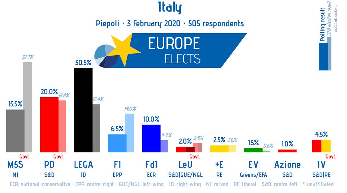 Italy, SWG poll: LEGA-ENF: 32% M5S-EFDD: 28% PD-S&D: 17% (-1) FI-EPP: 8% (+1) FdI-*: 4% PaP-LEFT: 3% (+1) +E-ALDE: 2% (-1) Field work: 5/09/18 – 10/09/18 Sample size: 1,500pic.twitter.com/yRvYoo3izk