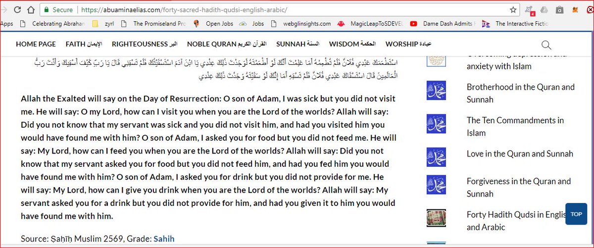 #WiseMenBuildBridges &#UwillFindTrueFriendsOnTheBattlefield#40hadith#Allah the#Exalted will say on the Day of Resurrection: O son of Adam, I was sick but u did not visit me. He will say: O my Lord, how can I visit u when you are the#LordoftheWorlds... https://abuaminaelias.com/forty-sacred-hadith-qudsi-english-arabic …pic.twitter.com/X0AW0fEo8Y