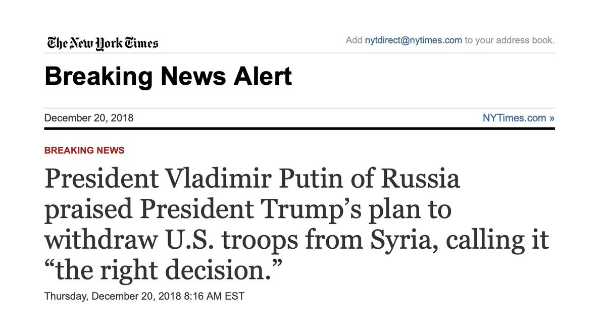 so Trump supporters, understand how very bad this is for our real allies in the region and know there is no other reason for us doing this than it makes Russia, Syria, Iran, and Turkey happy (just the opposite of the lie you are being told by