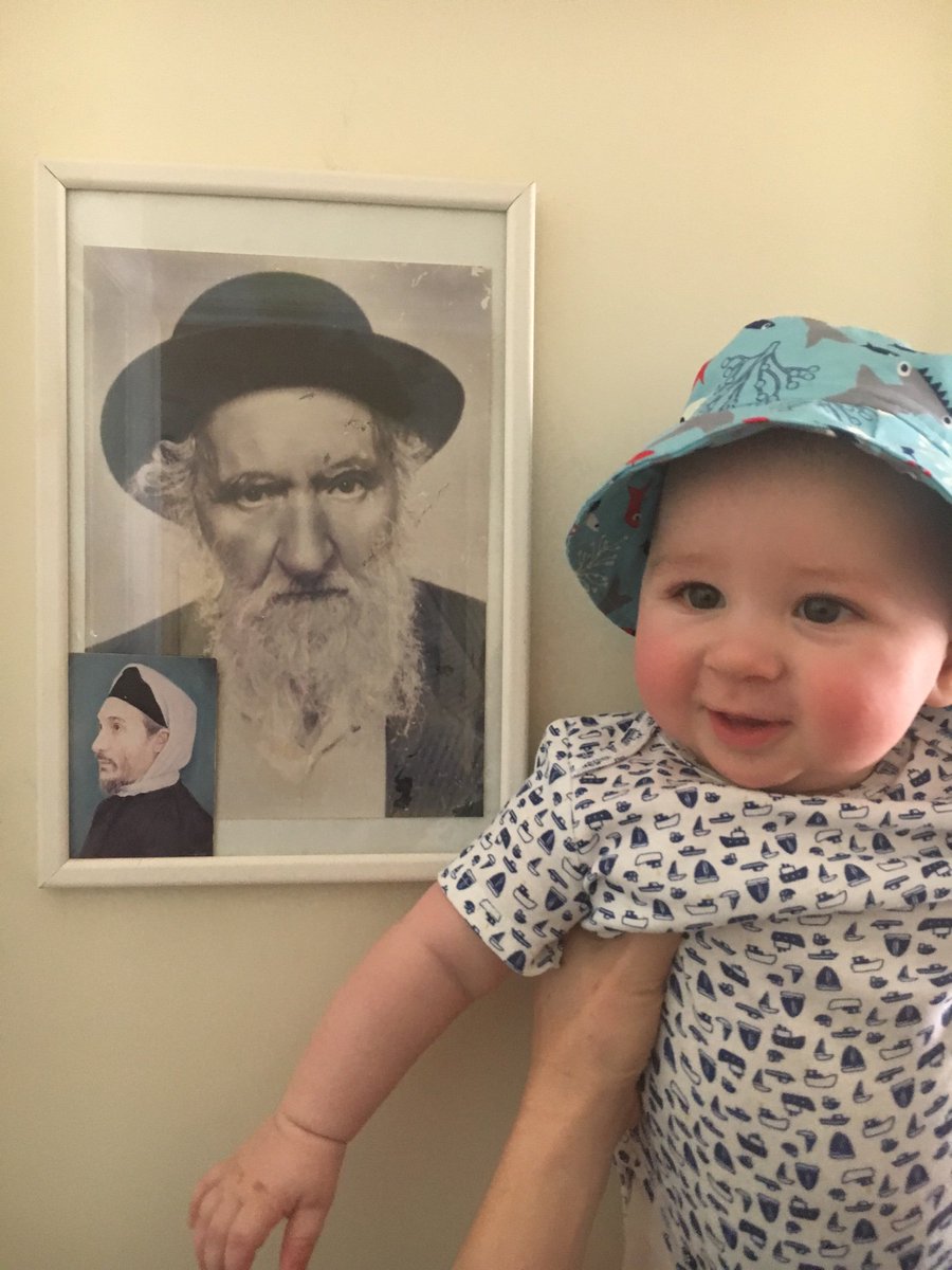 Evan I had to show you how Noah has grown since Hanukkah. On the right is him next to his great great grandfather rabbi Chaim of Rabat Morocco. We also call him Smiley McGiggles. Feel free to use that one.