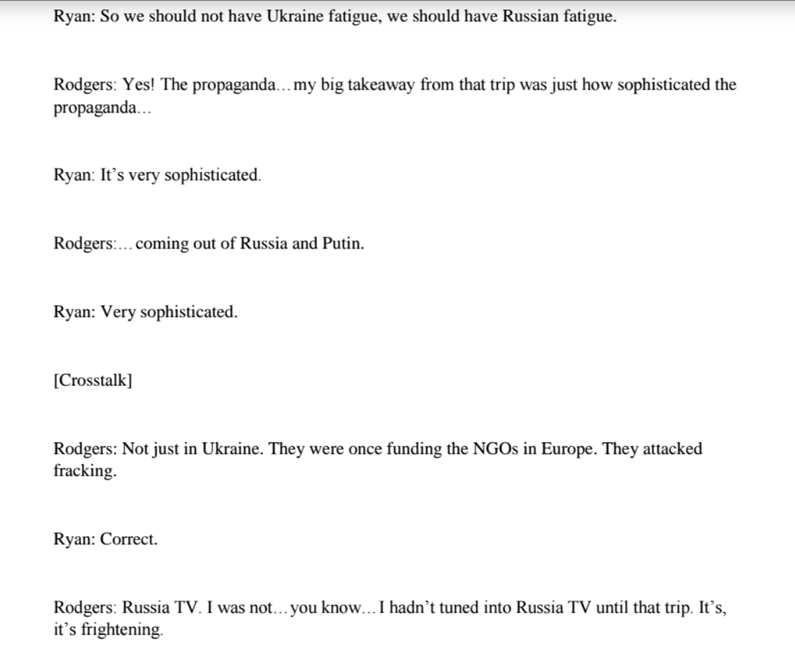 Ryan, McCarthy, Rodgers and @SteveScalise were talking about the "sophisticated" RUSSIAN propaganda in Ukraine.