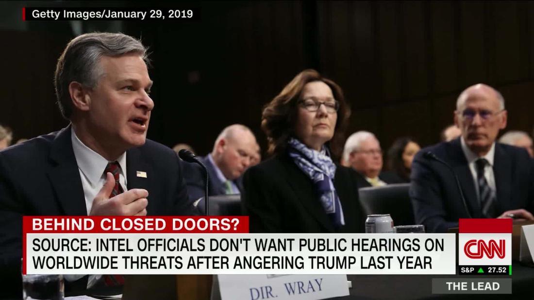 Source: Intel officials don't want public hearings on worldwide threats for fear of angering Trump @kylieatwood reports https://cnn.it/2QZ3wMI  pic.twitter.com/X0HzfBNx6B