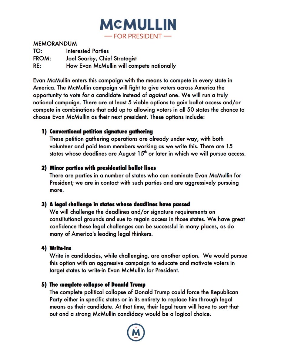 This picture is a memo sent by campaign manager, Joel Searby. it's the plan for ballot access.
