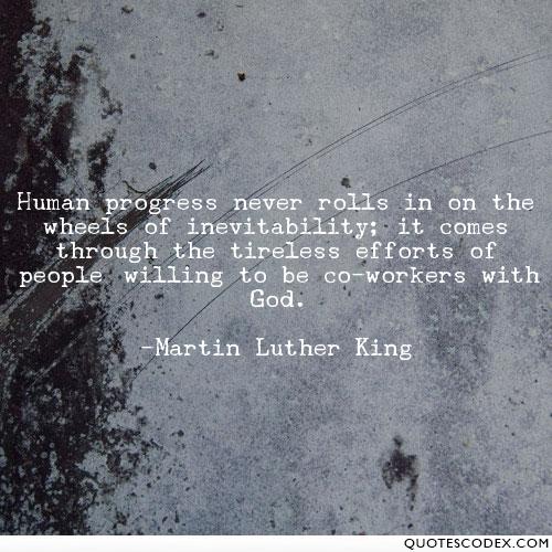 Thank you for your work! "progress never rolls in on wheels of inevitability...comes through tireless efforts"