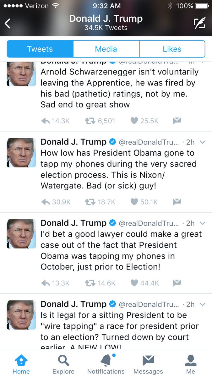 @realDonaldTrump Key point:If Trump were wiretapped, that meant a case was made and accepted. He seems oblivious to this.