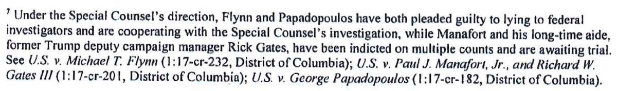 An apparent mistake in the declassification process, footnote 7 seems to reveal what's redacted: FIVE campaign officials were under investigation as of Sept. '16, including the future National Security Advisor, MICHAEL FLYNN. pic.twitter.com/Nm4ZKKJCrc