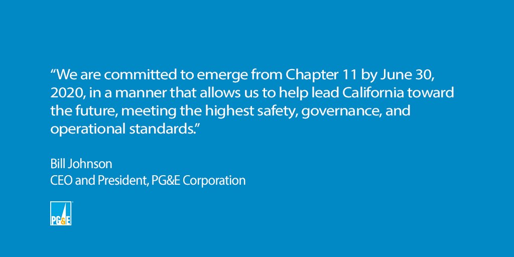Company’s Bankruptcy Plan Is on Track to be Confirmed by June 30 So PG&E Can Pay Victims and Participate in the State’s Go-Forward Wildfire Fund http://bit.ly/31ea4e1 pic.twitter.com/fZzLHzN8KM