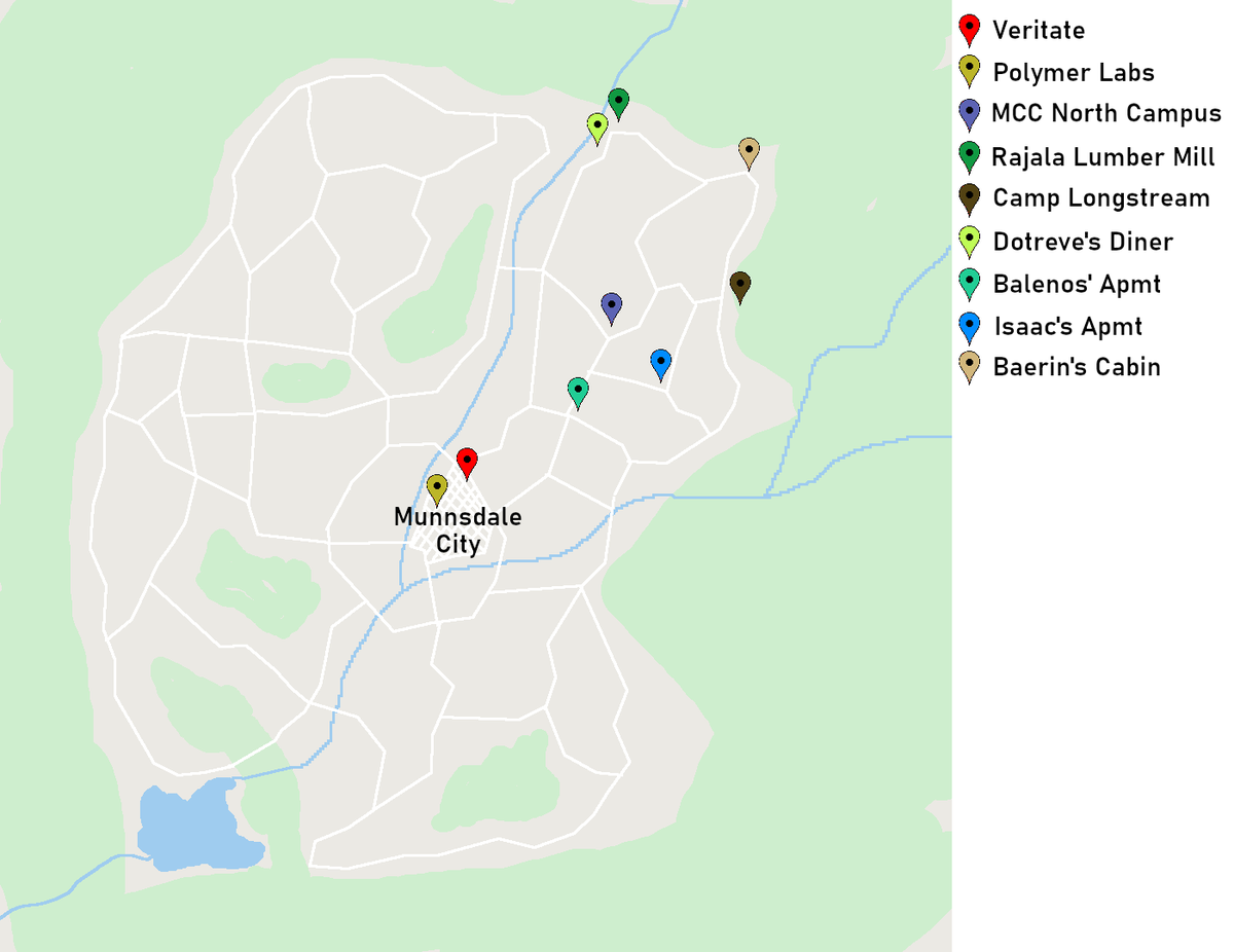 Need help getting around Munnsdale? Try this map, featuring the approximate relative positions of some key locations! I wonder what's happening at the Polymer Labs? Arc 2 now live http://anchor.fm/theforestcast !