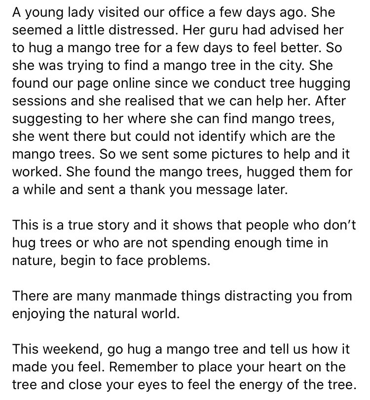 When was the last time you hugged a tree? Do it because it will make you feel better, not for a photo op.pic.twitter.com/ltatulF6KW