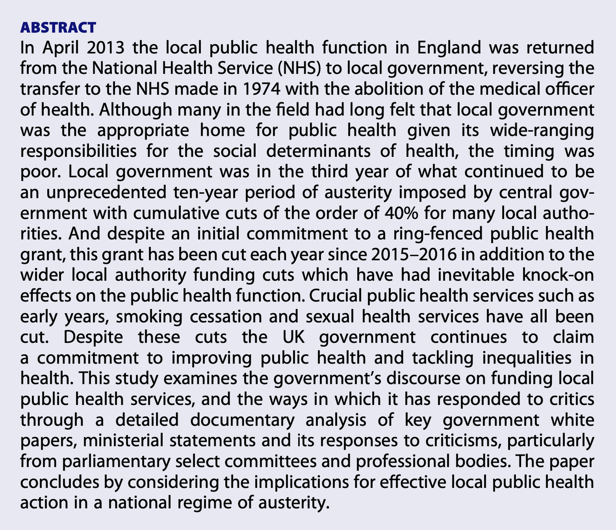 What price public health? Funding the local public health system in England post-2013 by David Evans http://doi.org/10.1080/09581596.2020.1713302 …pic.twitter.com/VpoHh9Tajy