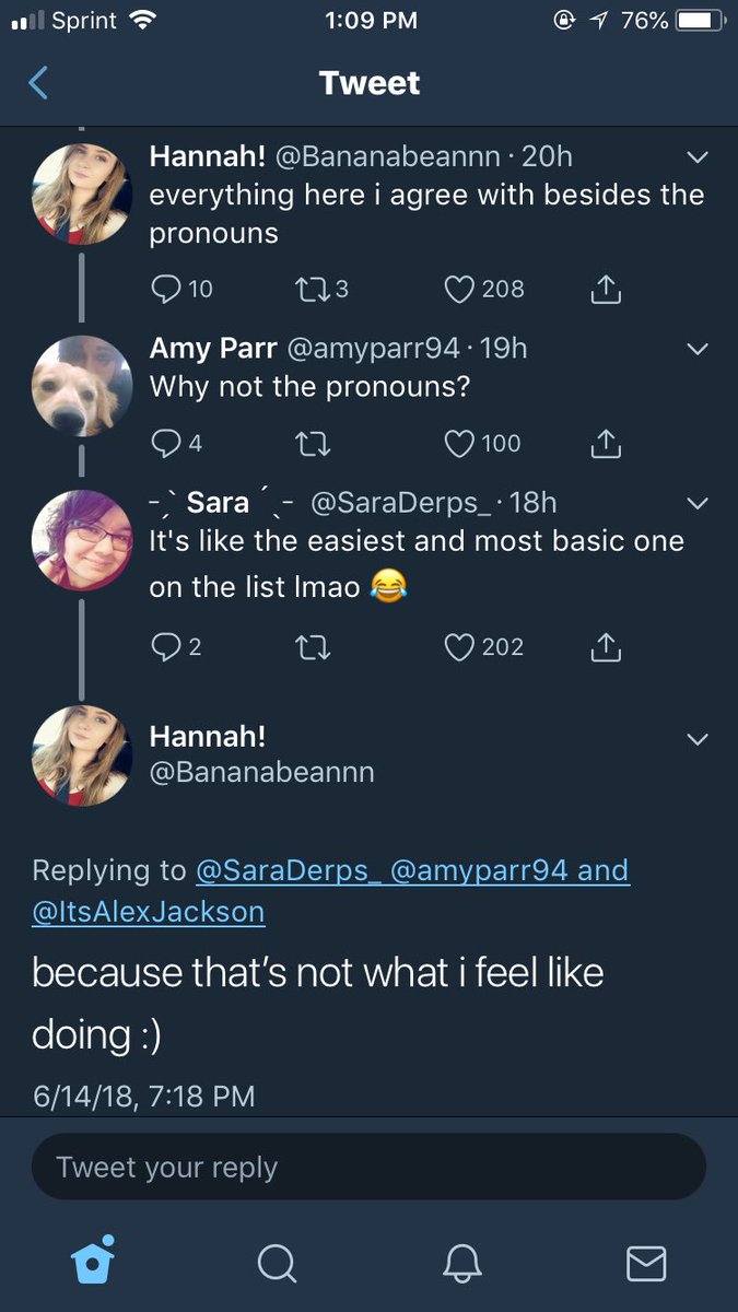 Everyone replying with “agree with everything except the pronouns” you’re actually just being ignorant lmao the one that requires an semblance of effort is the one thats too hard kill yourselves lmfao https://twitter.com/itsalexjackson/status/1007033394381893632 …