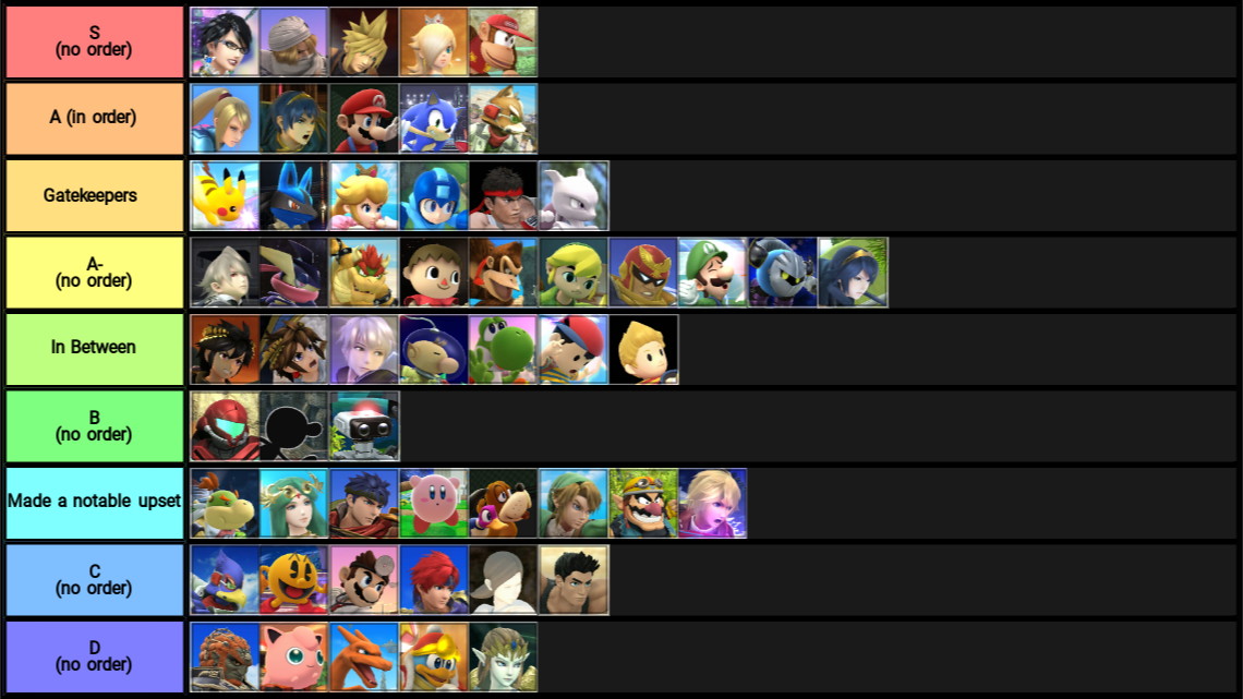 tier list imo. i used ssbworld as help on MU's and determined from there where i think they belong. *EDIT* i forgot to move the onett boyspic.twitter.com/OZ95AiMixw