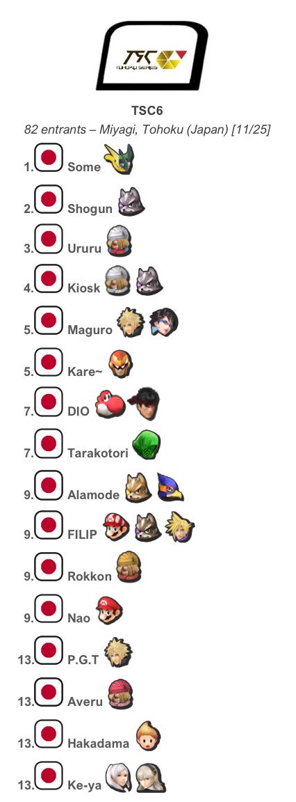 TSC6 - Results! Bracket:http://challonge.com/ja/tsc6_A  pic.twitter.com/pJcTW6uhuN