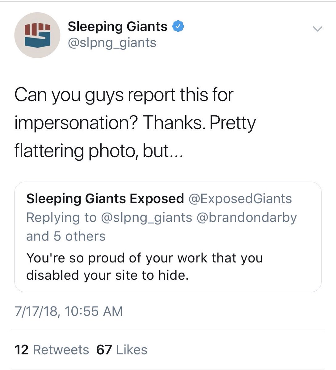 Public exposure just put its foot in "sleeping giants" butts and shoved it right out from under the covers,out of the bed and onto the floor where everyone is now staring at Weeping Complainants crying out to twitter,lol.