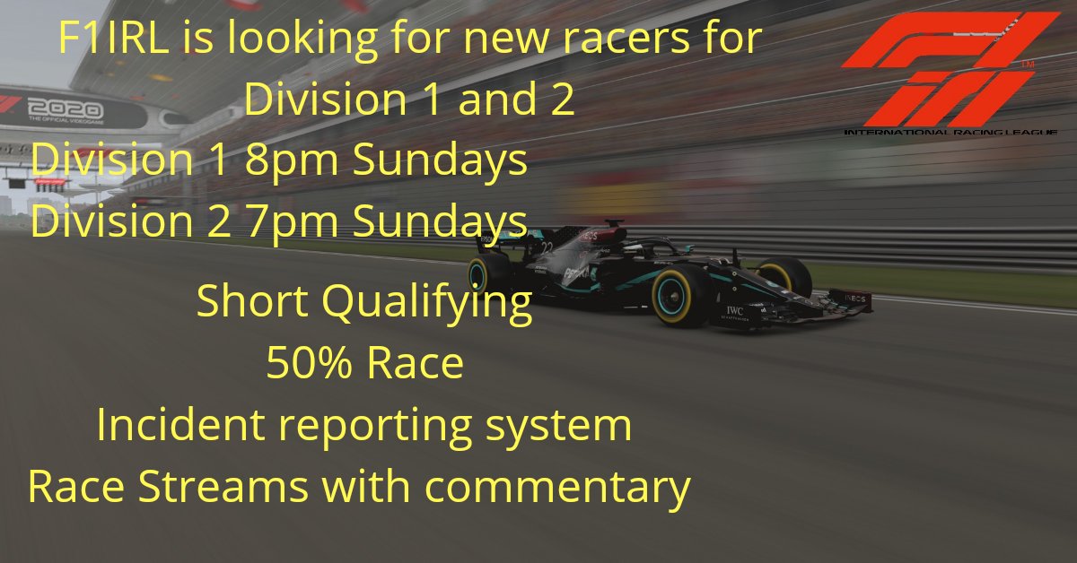 We've had a great response to this, and are close to having a full grid in tier 2 again, if you're looking for a league with good banter and fair racing then sign up todayhttps://twitter.com/F1IRLeague/status/1300391933819473920 …