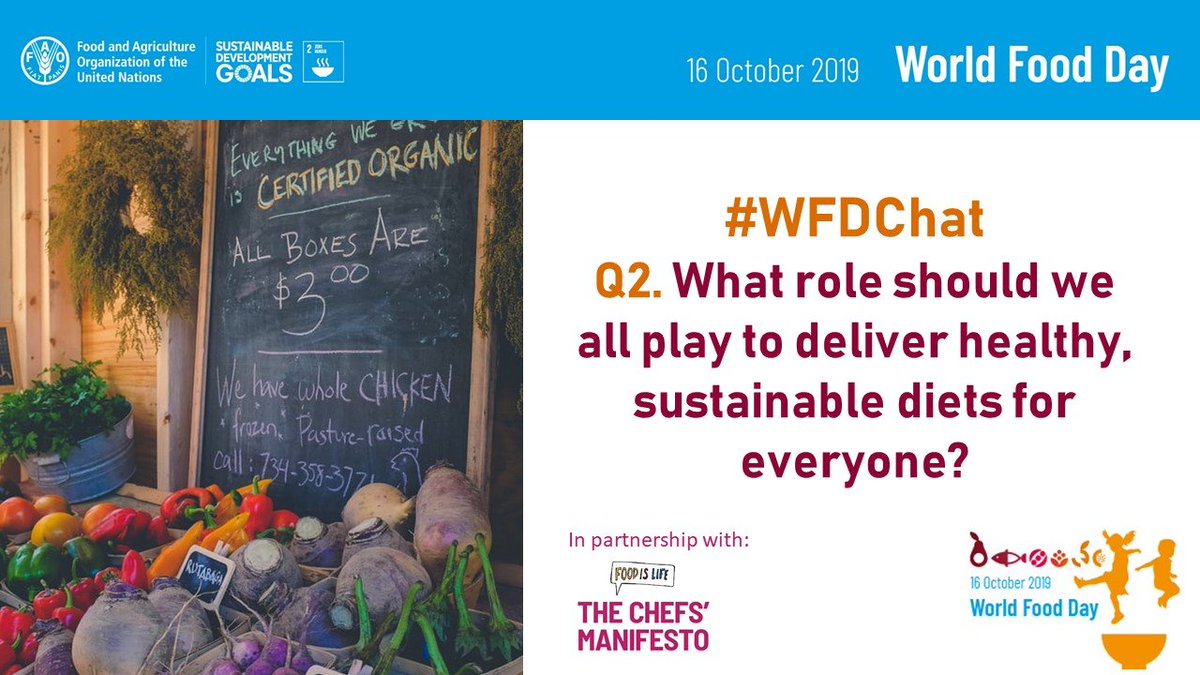 What role should we all play to deliver healthy, sustainable diets for all i.e. farmers, chefs, government, NGOs, civil society, youth etc.? #WFDChat #WorldFoodDaypic.twitter.com/haRg6dDGDR