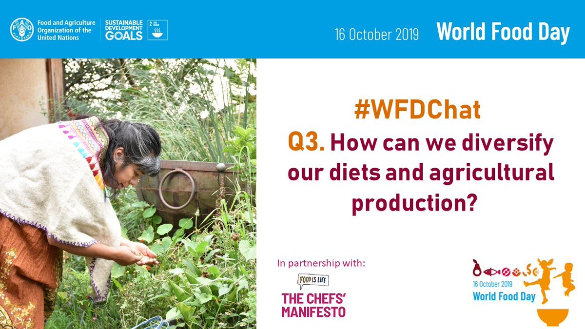 Today only 9 plant species account for 66% of total crop production despite more than 6000 food species that have been cultivated for food. How can we diversify our diets and agricultural production? #WFDChat #WorldFoodDaypic.twitter.com/jmK6fzv8ak