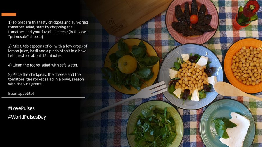 Answer 6⃣ Six words: chickpea & sun-dried tomatoe salad. Ps: pulses have their own food standards too. Read the @FAOWHOCodex standard for certain pulses for more ➡ http://bit.ly/2XAe6g5  #PulsesChat | #WorldPulsesDaypic.twitter.com/iG2cNJOdJz