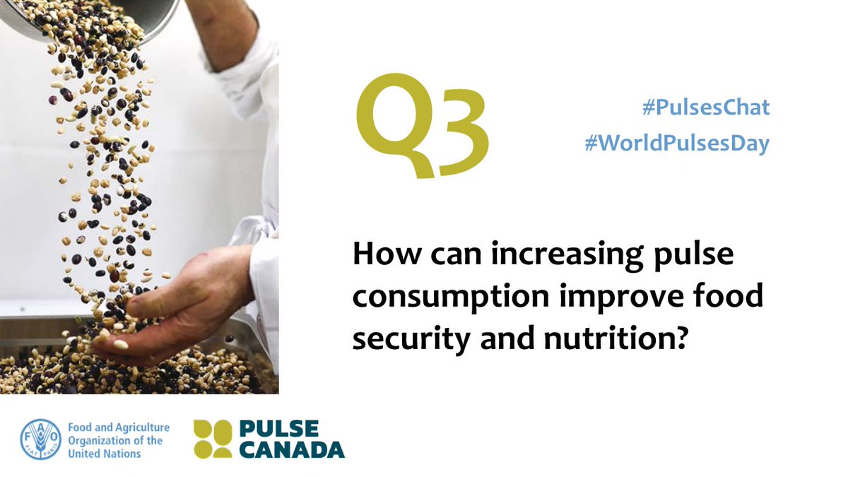 Question 3⃣ How can increasing pulse consumption improve food security and nutrition? 🍲 #PulsesChat | #WorldPulsesDaypic.twitter.com/ag6WHB73Iu