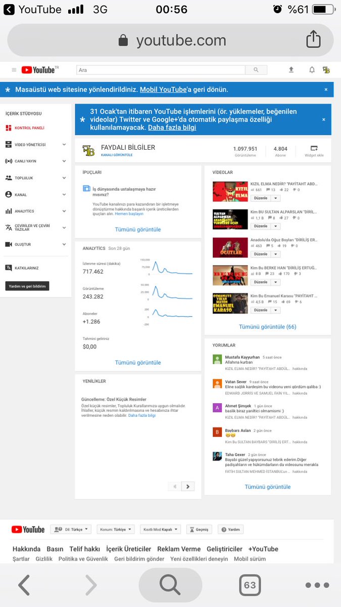 @TeamYouTube My Channel name:faydalı bilgiler YouTube User ID: 87pVteBukFzQv_xA1UC6Kg YouTube Channel ID: UC87pVteBukFzQv_xA1UC6Kg 4000 watch hours and also completed my 1000 subscribers. my request you to please review my channel and enable monetization as soon as possiblepic.twitter.com/quR358Es0T