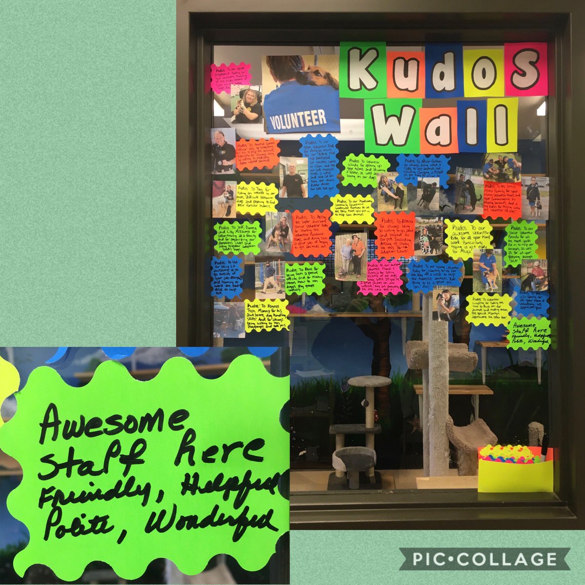 The Kudos Wall is a recent addition to our Adoption Center as a way to #appreciate our#volunteers and#staff for the awesome things they do to help our animals.pic.twitter.com/4sJ7EUIldk
