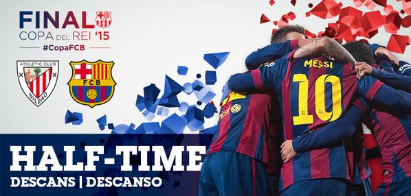 @FCBarcelona: HALF-TIME: Barça head into d break up by a pair on goals from#Messi &#Neymar! ATH 0-2 FCB#FCBLive pic.twitter.com/xXOt0Q76pE"