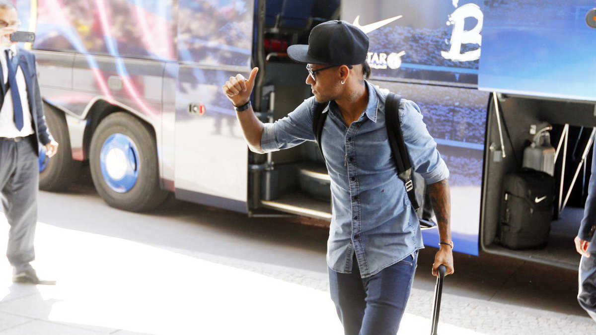 @FCBarcelona@neymarjr's one, look at his style, using black glasses and how when he went down from the bus