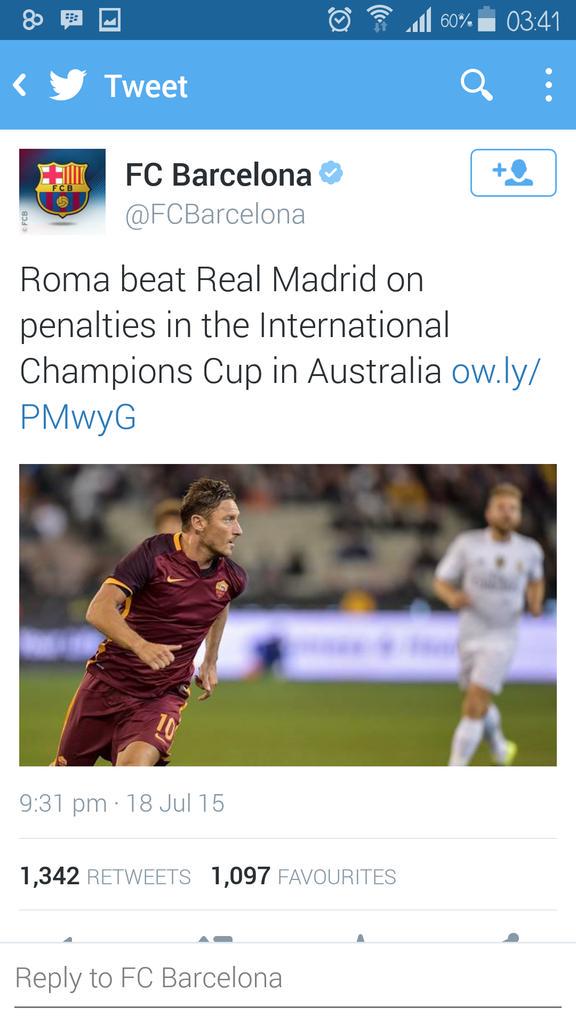 @FCBarcelona Roma are our opponents in the Gamper trophy. Barca tweets about opponents every year -
