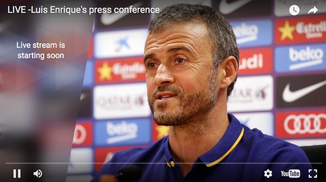 📢 Coming up! Watch Barça manager Luis Enrique's weekly press conference LIVE in English! http://ow.ly/4nexES pic.twitter.com/Pi0KWXDWor