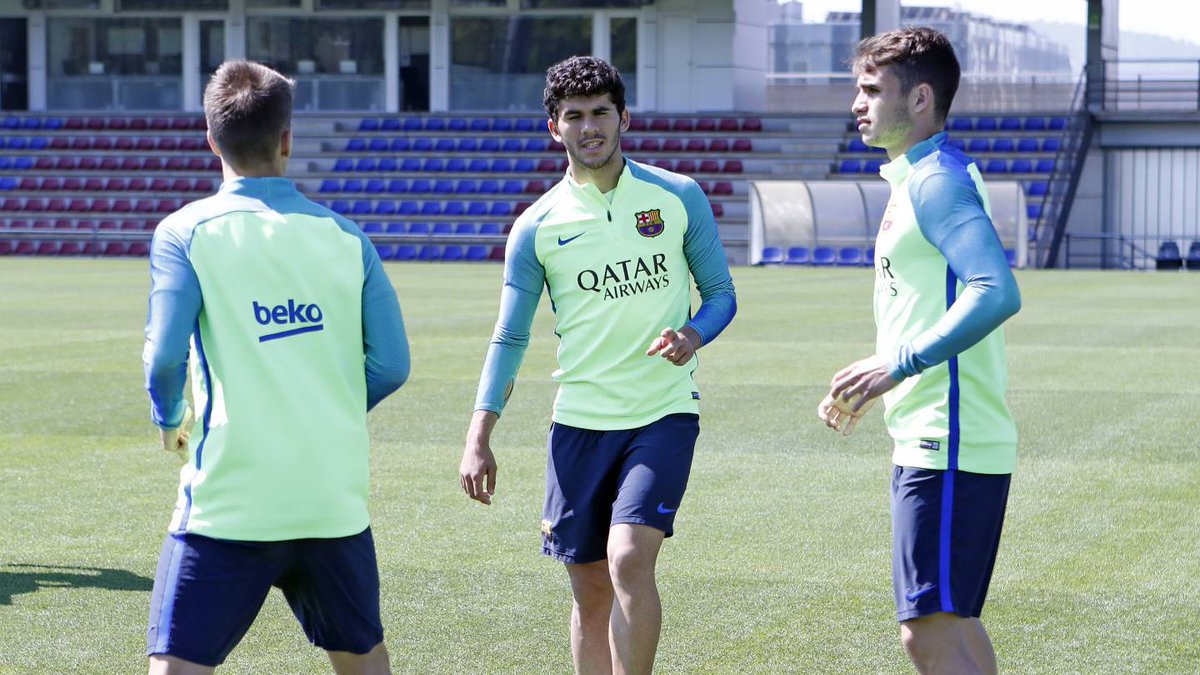 Training session with the available first team players at the Tito Vilanova pitch with Barça B's Aleñá and Carbonell