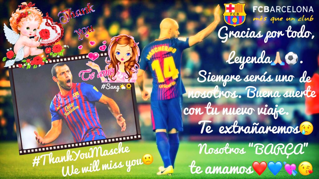 #ThankYouMasche por la entrega, el liderazgo, la humildad, el talento, la personalidad y el amor que demostraste a este BARÇA siempre necesitado y nutrido de gente como tú la que nos hace amar y sentir este club tan nuestro como tu lo hiciste tuyo, te esperamos de vuelta suerte!Thanks. Twitter will use this to make your timeline better. UndoUndo