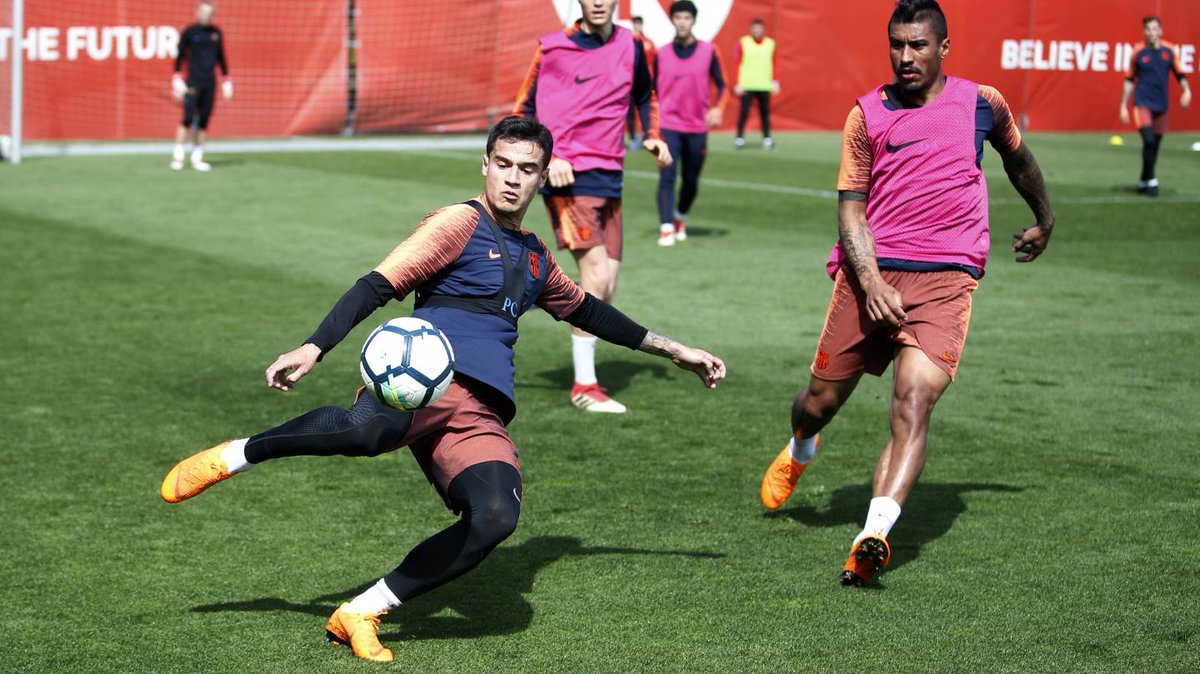 Coming from Liverpool, I hope someone explained to Coutinho what that black thing under his body is. Joy of training under the sun.