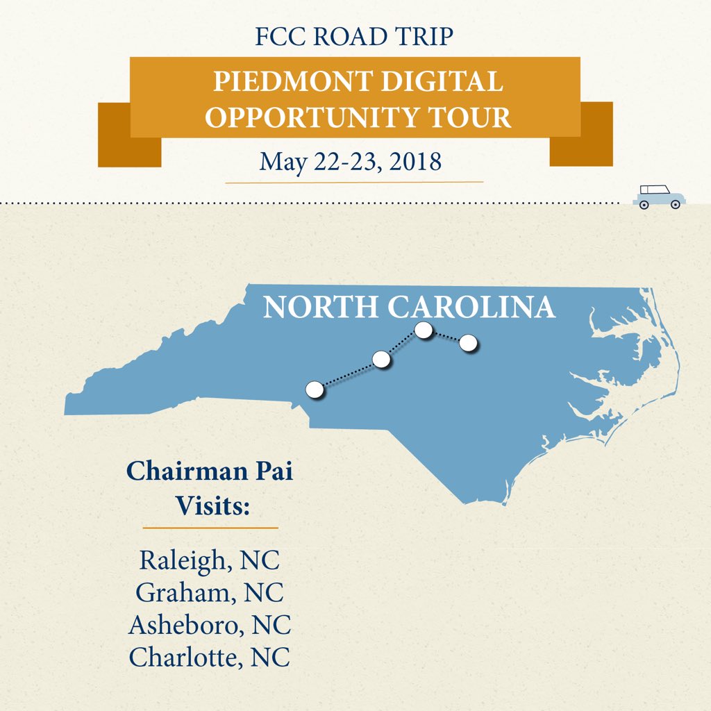 @AjitPaiFCC will join the Charlotte Chamber of Commerce for a fireside chat & meet with business leaders during his Piedmont Digital Opportunity Tour#DigitalDivide#Jobspic.twitter.com/1NNN1UWnqq