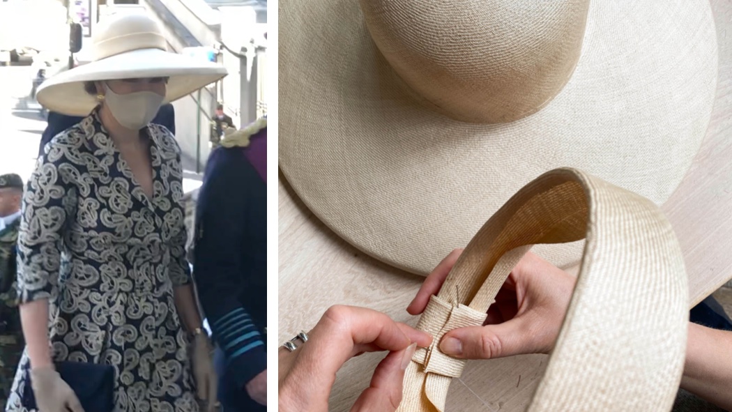 Koningin Mathilde droeg vanochtend bij het Te Deum - de start van de nationale feestdag - een hoed van @FDelvigne. Op de foto rechts zie je hoe de ontwerpster deze 'Louisa', zoals de creatie heet, speciaal voor deze gelegenheid maakt uit parabuntal, een soort stro.pic.twitter.com/1uaCheBqpr