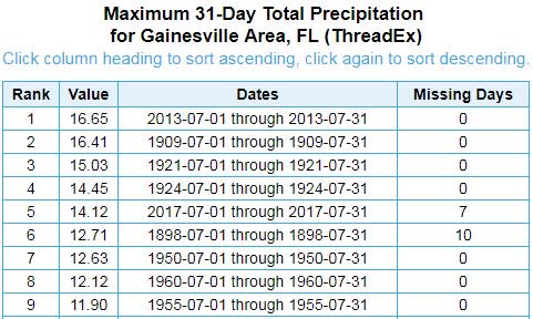 Gainesville is now in the top 5 for precipitation in July and during the summer period (June-August). Here's an update on the totals!