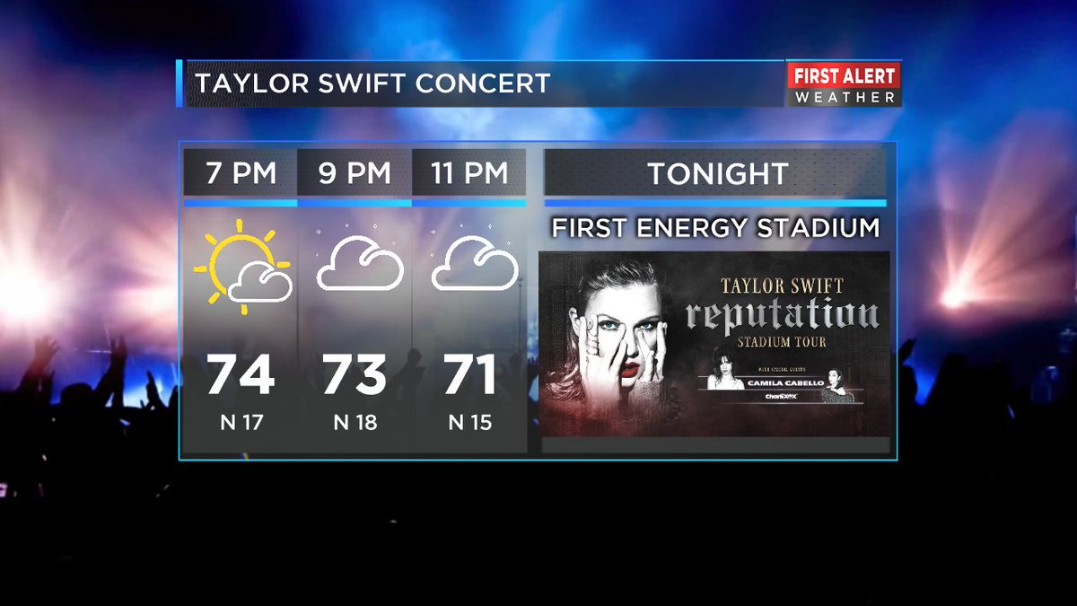 @taylorswift13 show. It's going to be quite breezy along the lakeshore at@FEStadium. Don't forget: NFL Clear Bag Policy is in effect tonight.#WakeUpCleveland#ReputationTour@NVrsansky@jenpiccianopic.twitter.com/DnfIVwQ4cL