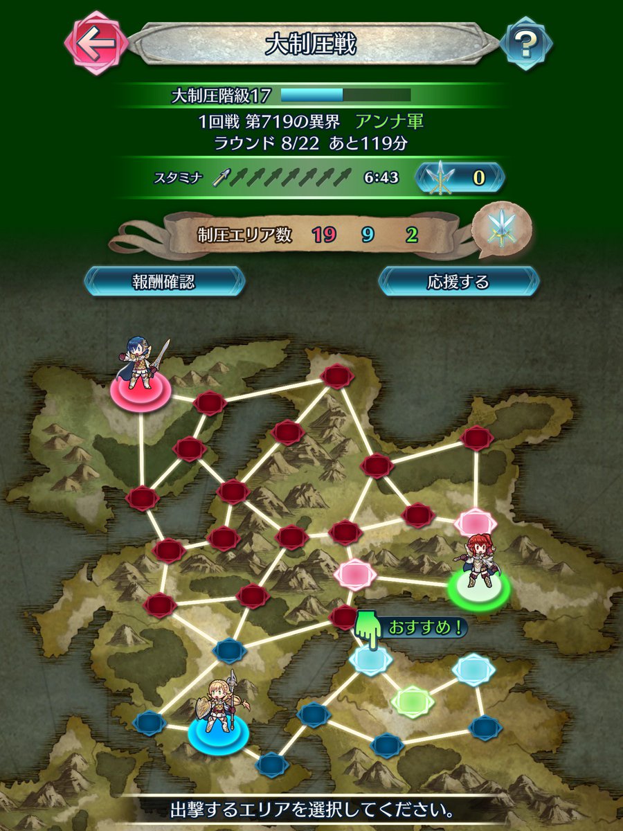 最初はどうなるかと思ったけど大制圧楽しい! 投票対戦と違って専用のスタミナ制にしたのもよかったかと