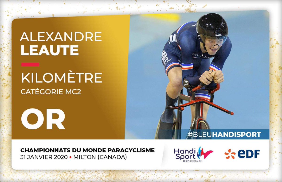 #Paracyclisme La plus belle des récompenses pour ALEXANDRE LÉAUTÉ qui devient CHAMPION DU MONDE à l'OMNIUM (cumulatif) C2 Au total: 1 x