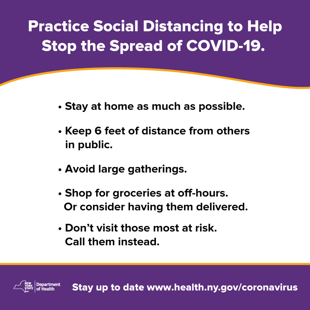 #Coronavirus to keep yourself and your community healthy. - Stay home as much as possible. - Keep 6ft of distance from others in public. Stay up to date. http://ny.gov/coronavirus pic.twitter.com/q3TjtcQAqV