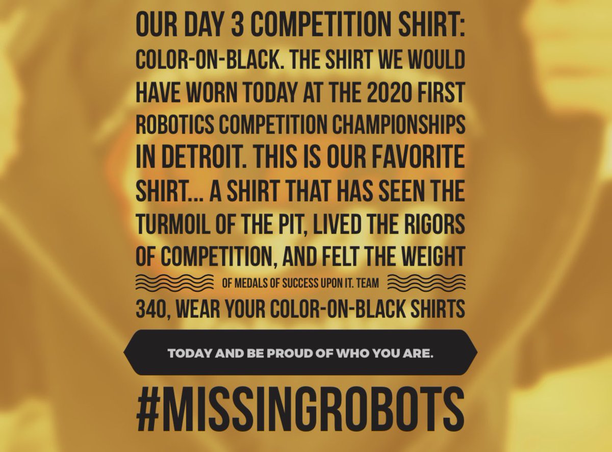 With deep regret, we inform you that the 2020 FRC season has been canceled. If you know an FRC student or mentor, please provide your support at this time. Our passion runs deep for what we do, and this is a very difficult time for us.