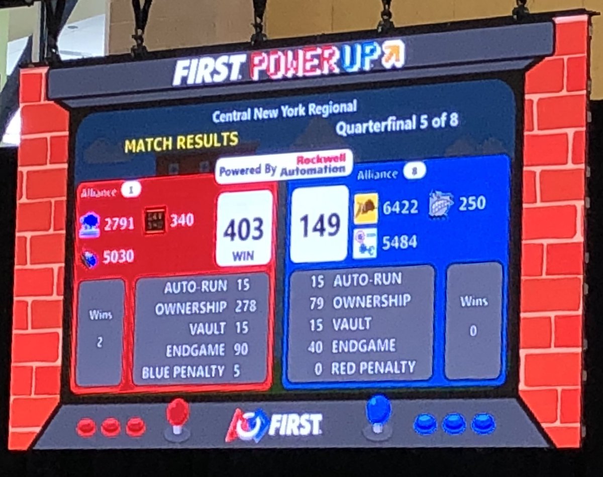 Made it into the semifinals at the Central New York Regional! Stay tuned for more! @FRC2791 @FirstTeam5030pic.twitter.com/xVIrsvdkMD