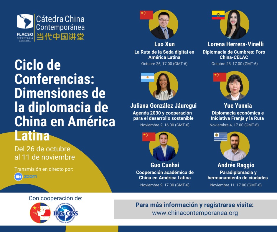 La Cátedra China Contemporánea de la Secretaría General de FLACSO les invita al I Ciclo Latinoamericano de Conferencias sobre China Contemporánea: "Dimensiones de la Diplomacia de China en América Latina y Caribe".