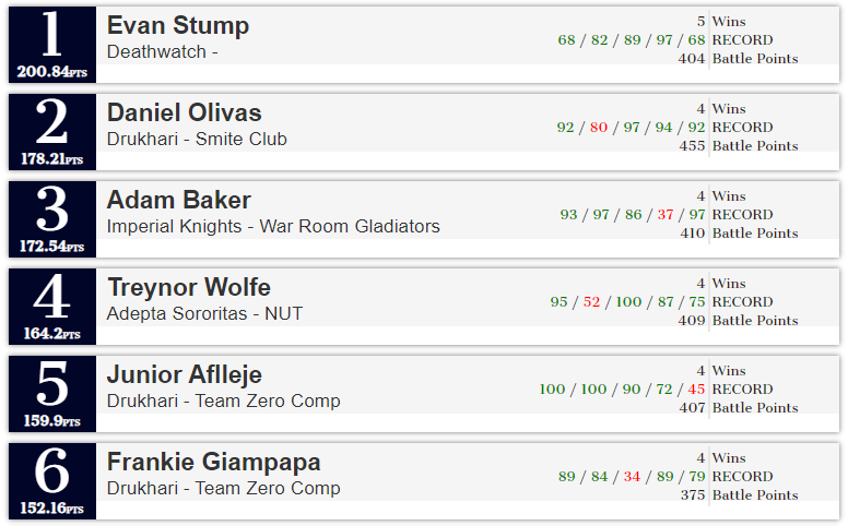 Congratz to our teammates Junior and Frankie, also, awesome to see Deathwatch at the top. Drukhari seem to be continuing their incredible run at the top of the pecking order as well.