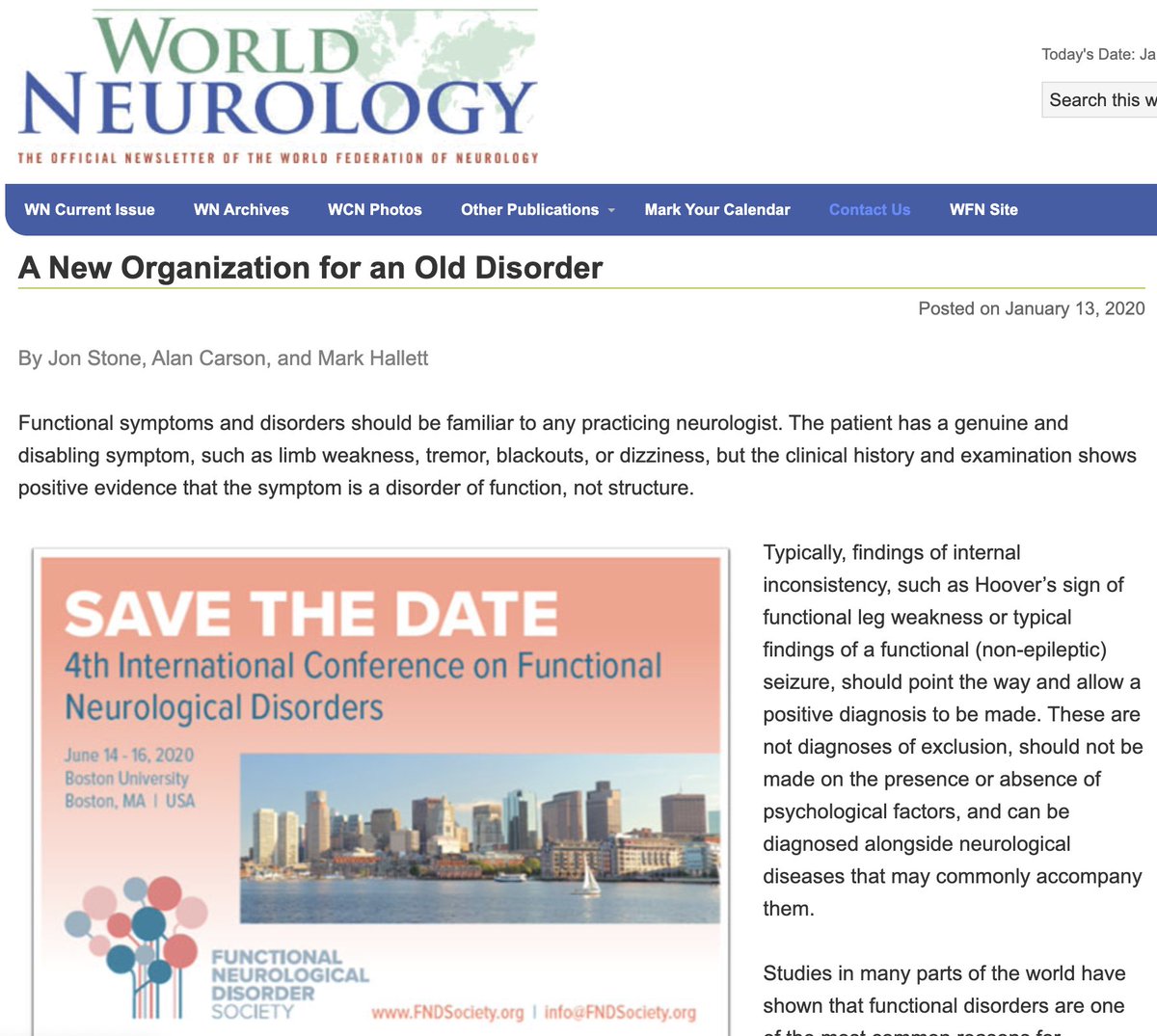 @wfneurology and all patient-led organisations for your support. The fourth international FND meeting, and the first as our new society is Jun 14-16, 2020 Boston http://www.fndsociety.org ,@FNDSocietyhttps://twitter.com/FNDHope/status/1217481663938101249 …