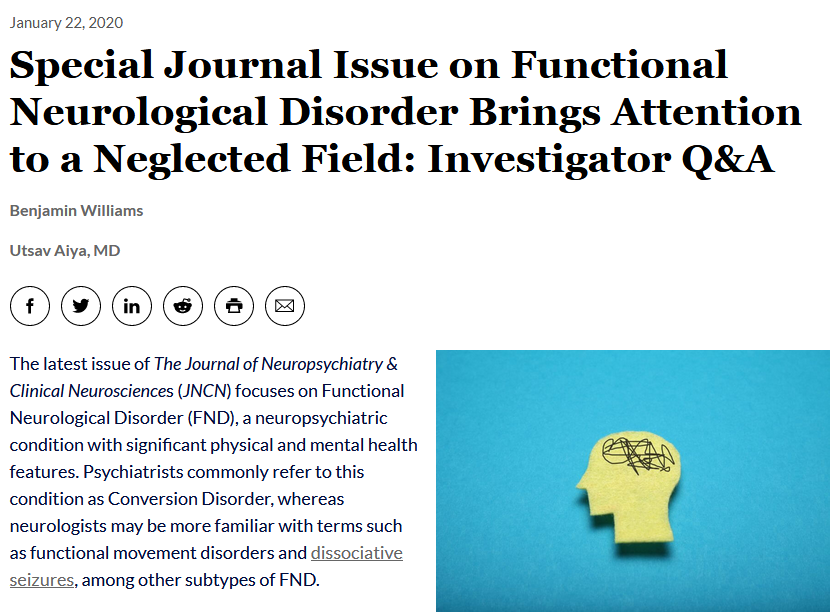 @PsychiatryAdv to discuss the latest issue of@APAPubJNCN focusing on FND.@PerezMGHLab@Tim_R_Nicholson https://bit.ly/30RWWLt pic.twitter.com/GcZGTbStFa
