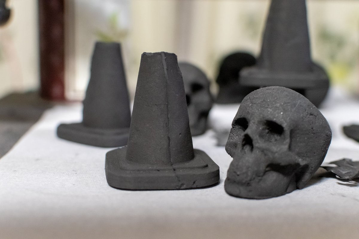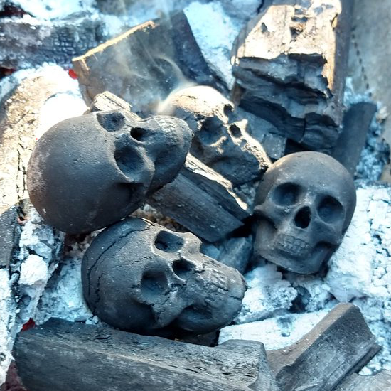 ワンフェス宣伝 へんな炭売ります。 卓番:7-19-13 シュプレヒ工房 ドクロ炭2個セット:1000円 試作コーン炭1個:500円