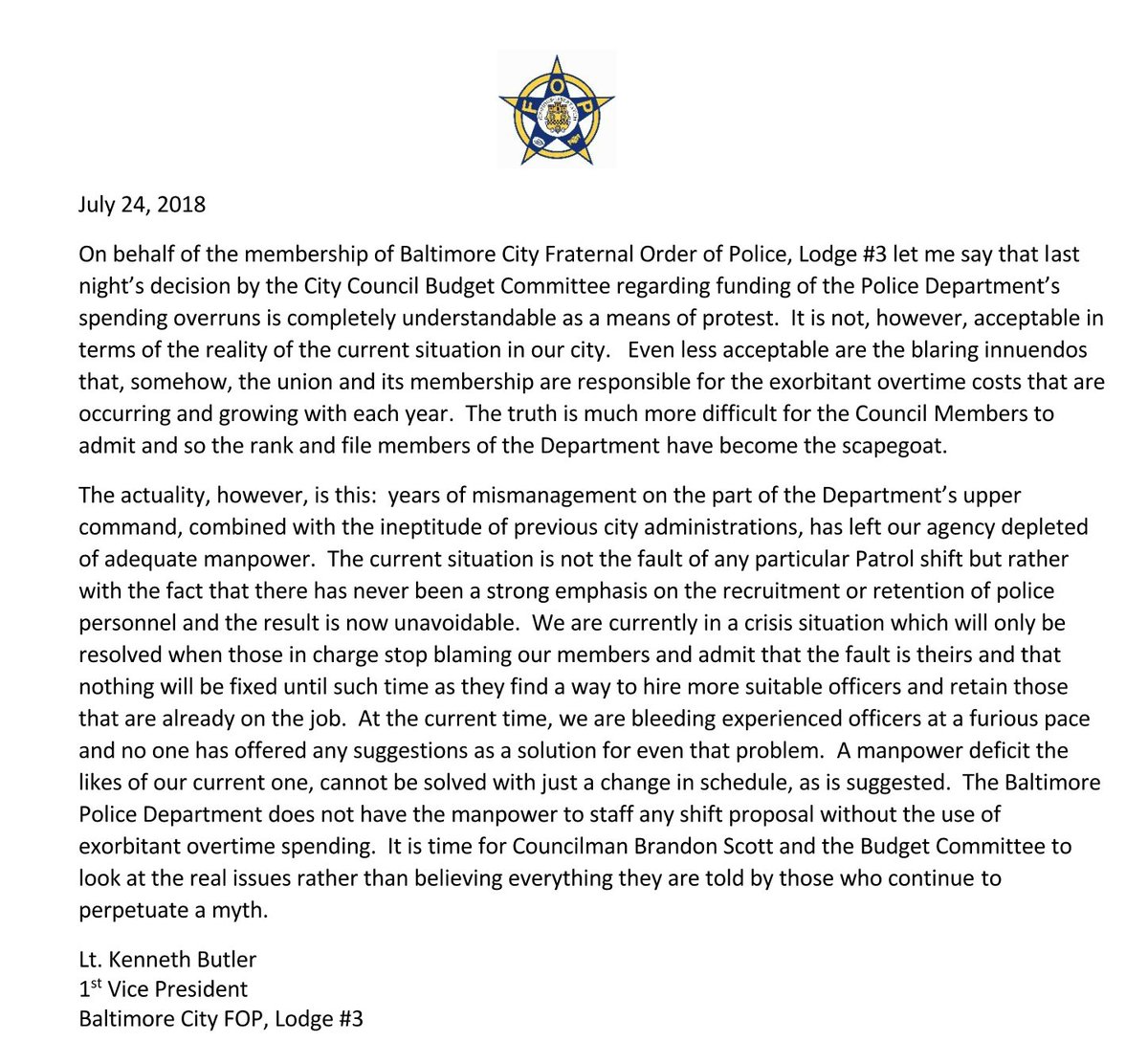 Statement in response to Baltimore City Council Budget Committee vote on 7/23/18pic.twitter.com/BPlqw63qlO