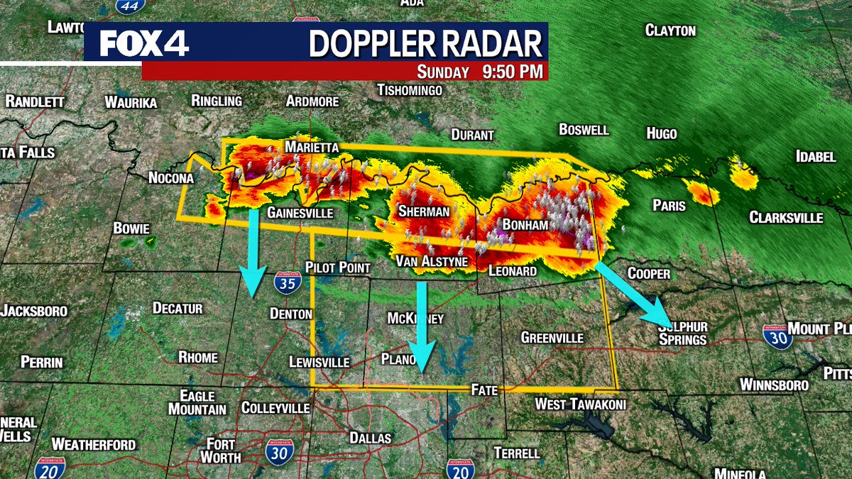 Strongest storms in Fannin and Grayson County remain capable of ping pong size hail and 60-70 mph gusts as they head S/SE.pic.twitter.com/qk7lFG0AMN